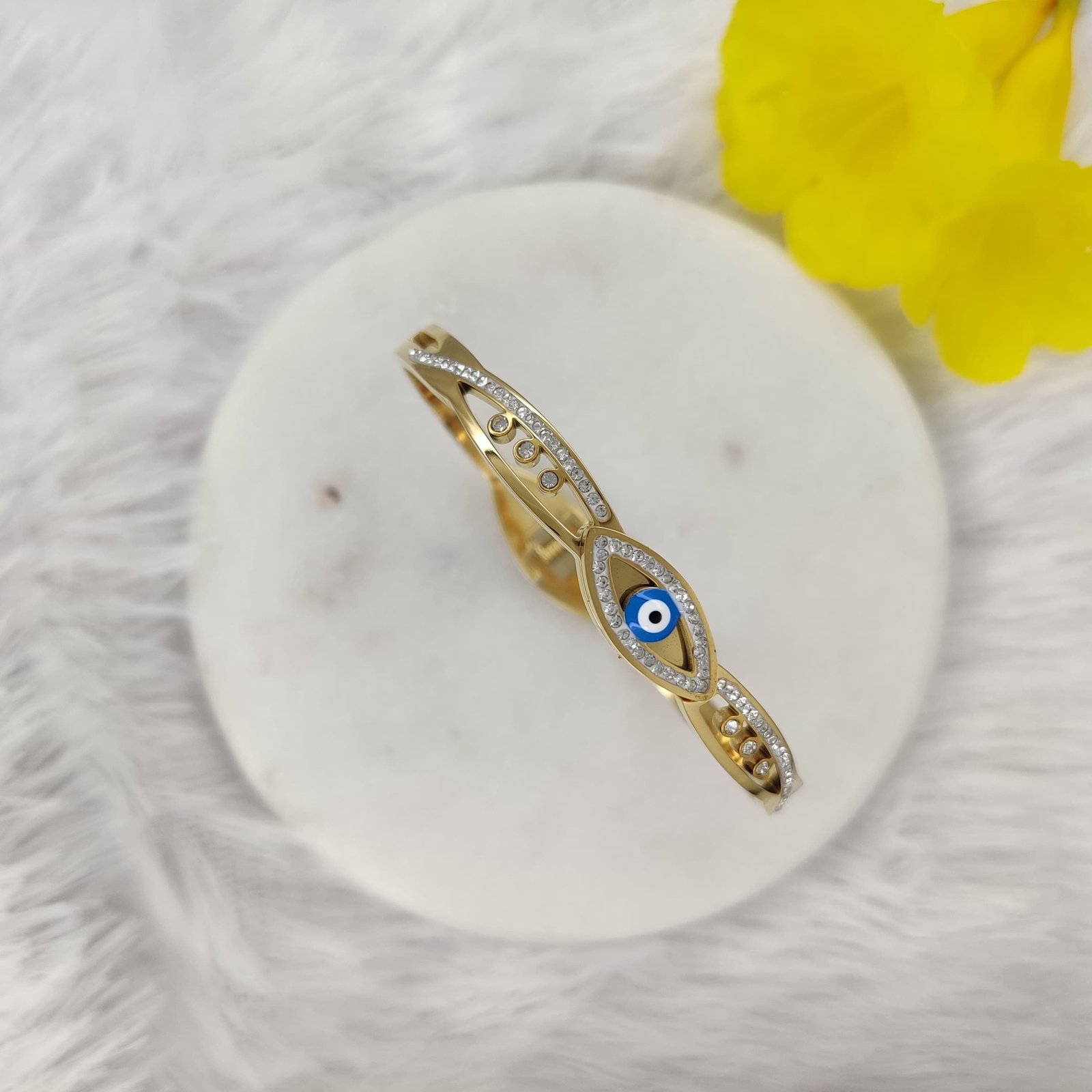 Strong, sleek, and symbolic — the ZirShield bracelet features a powerful evil eye charm outlined with radiant zircon stones. Crafted with an anti-tarnish finish, it offers long-lasting shine in one striking piece.