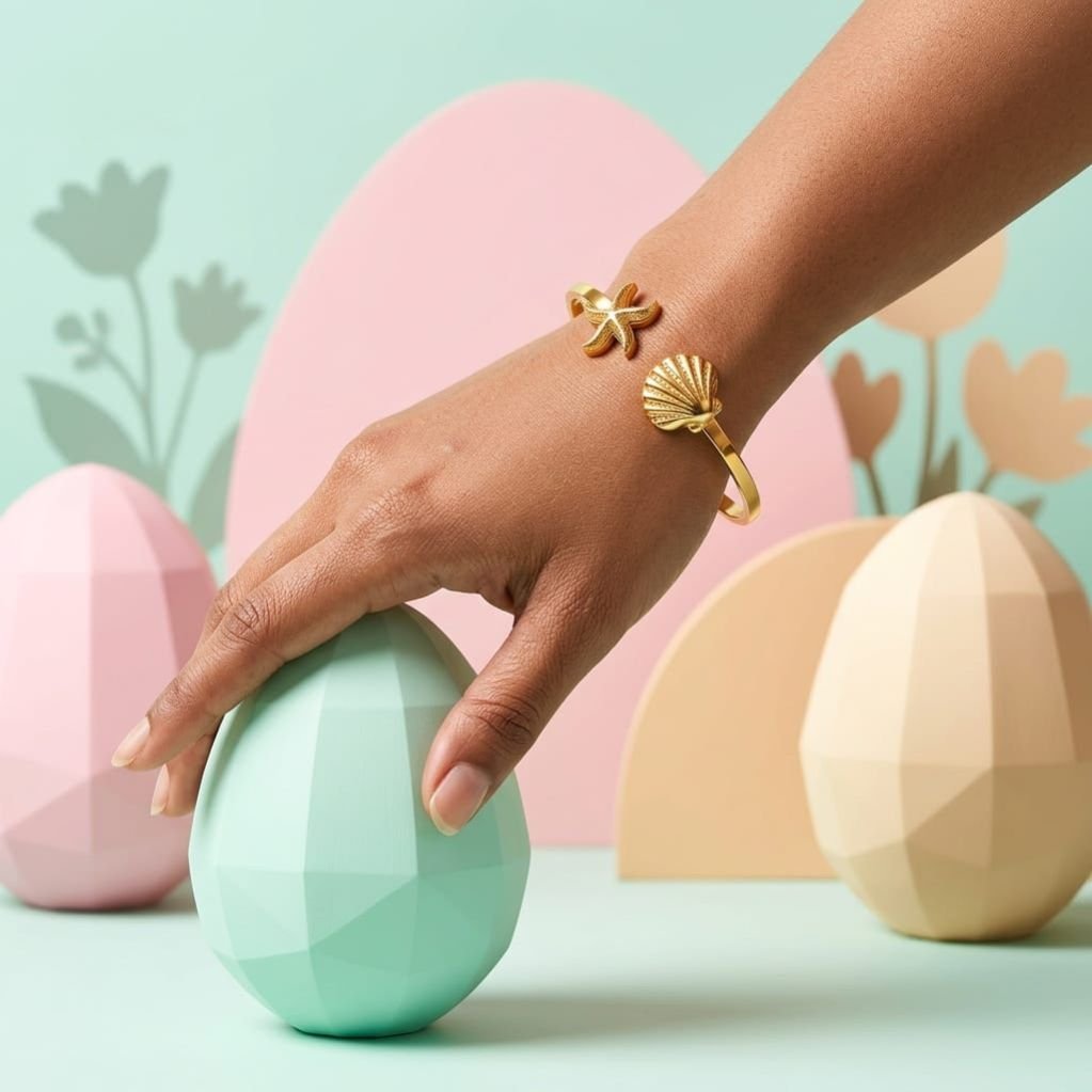 Channel coastal elegance with the Ocean Muse Open Cuff Bracelet, a beautifully crafted piece inspired by the serenity of the sea. Designed with a graceful open cuff style, it features detailed starfish and seashell elements on each end, symbolizing natural beauty and freedom. The smooth gold finish adds a luxurious shine, while the adjustable fit ensures comfort for everyday wear. Perfect for beach lovers and minimal jewelry enthusiasts, this bracelet effortlessly blends playful charm with modern sophistication, making it ideal for both casual and statement styling.